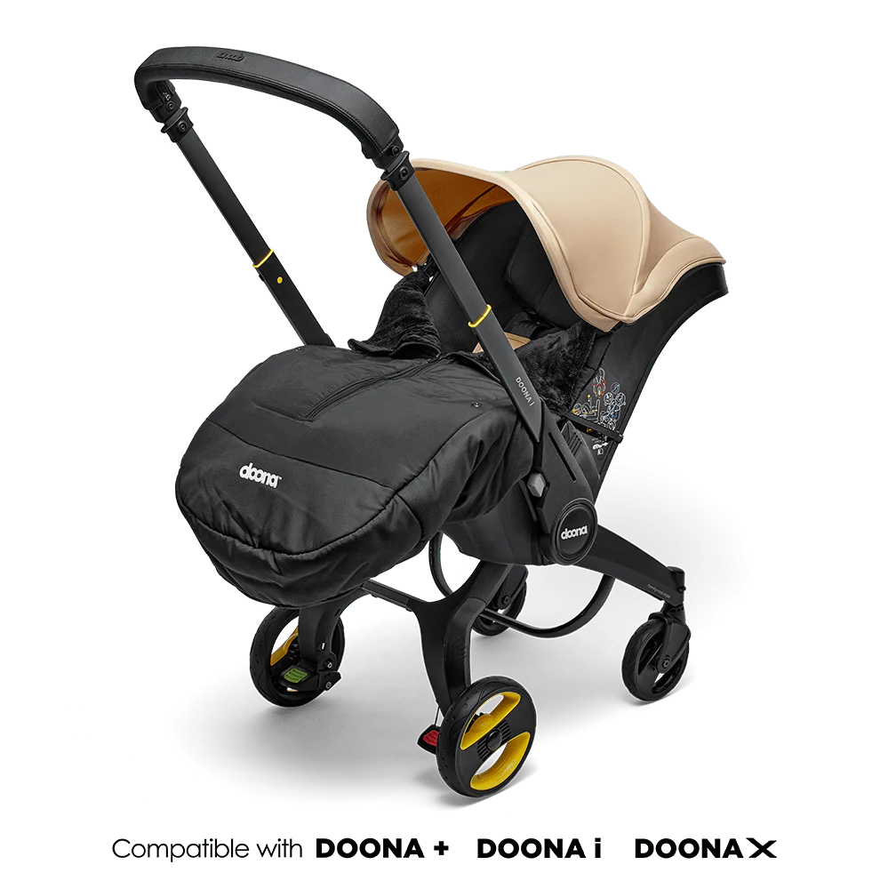 Designed to fit over your Doona Car Seat & Stroller to keep your child protected and warm in colder weather. The water-repellent outside layer protects your baby from wind and cold, and the luxurious lining ensures maximum comfort. The Doona winter cover has a snap collar that is fully adjustable according to your needs.